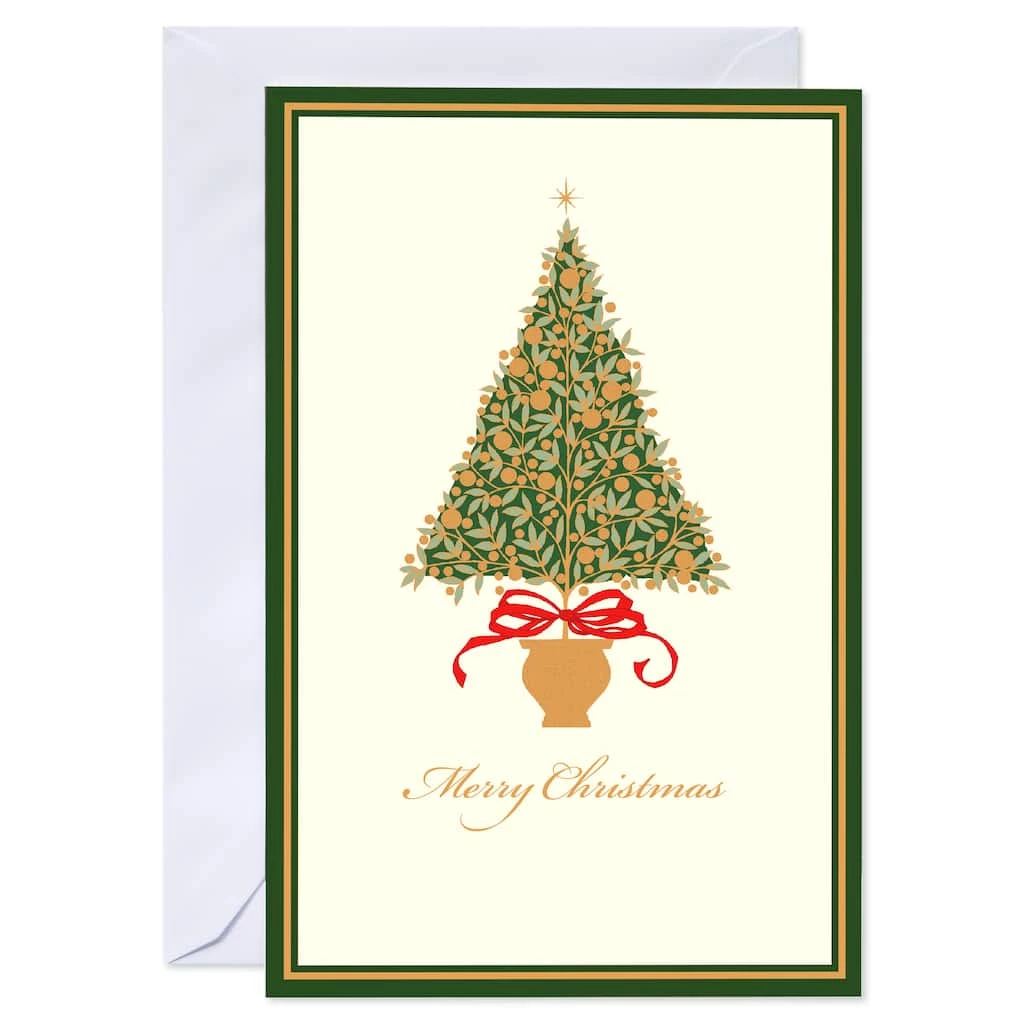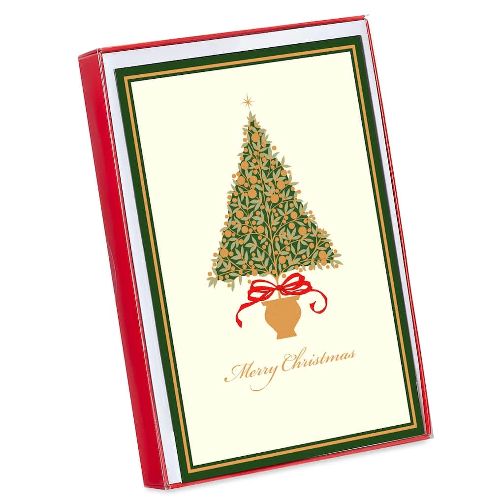 Add a lovely classic touch to the Christmas season with this box of cards featuring a beautiful tree on a simple ivory background. With a festive holiday wish inside, these cards are sure to warm the hearts of friends and family alike.