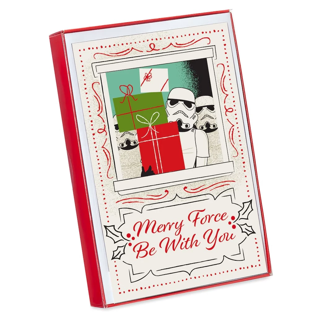 Bring a touch of fun to the Christmas season with this box of cards featuring a Star Wars theme. With a festive holiday wish inside, these cards are sure to warm the hearts of friends and family alike.
