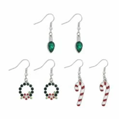 Best Pirce 👍 Christmas Silver, Green & Red Earrings Set by Celebrate It™ ✔️