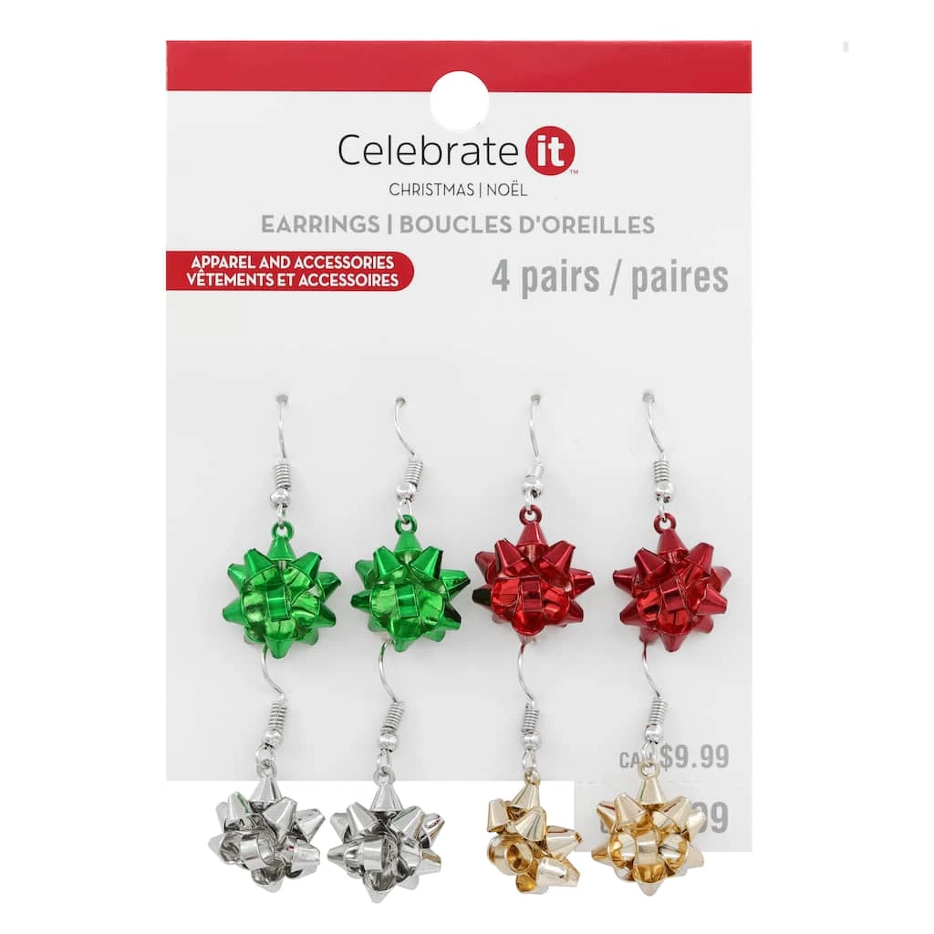 Bring a touch of festive flair to your holiday attire with these darling dangly earrings from Celebrate It. These shiny gift bow earrings are a great way to show your Christmas spirit at school, the office and gatherings with friends and family.