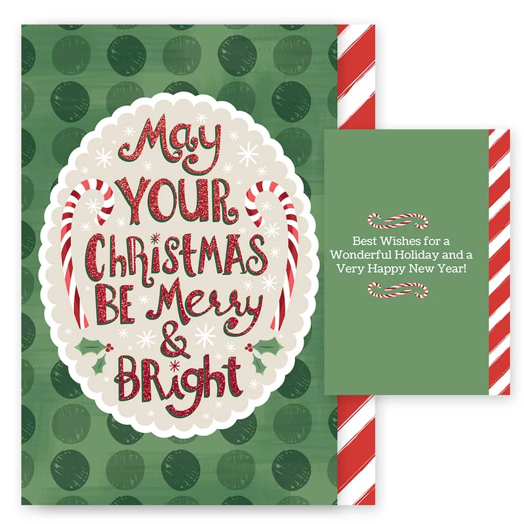 Brighten up the holidays with these sparkle holiday-themed cards. This set comes with 5 different festive designs to send to your friends and family.