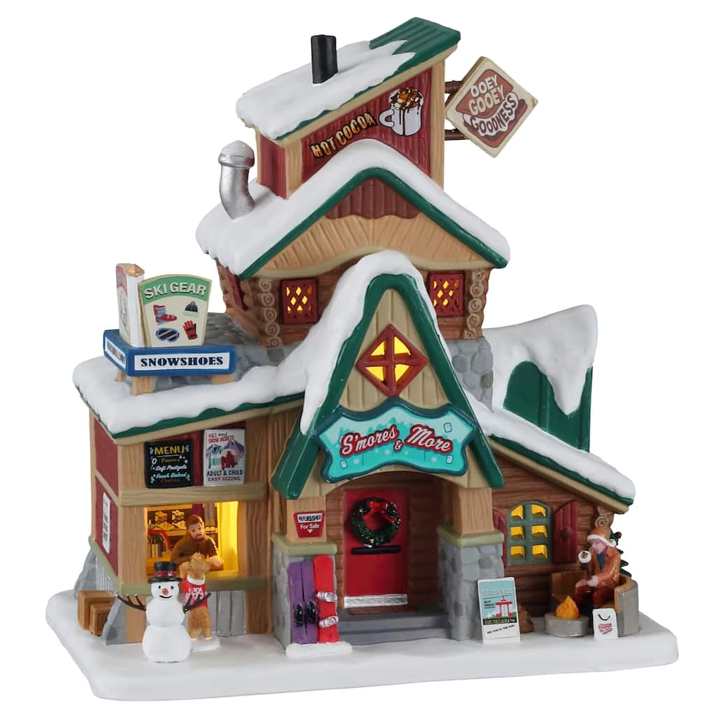 The Alpine CafΓ© is a cozy place to get some rest after a long day on the slopes. You can get warm inside with some hot cocoa or sit outside by the fire while enjoying an ooey-gooey s’more! You can even rent some ski gear or snowshoes at the open window on the left side of the building.