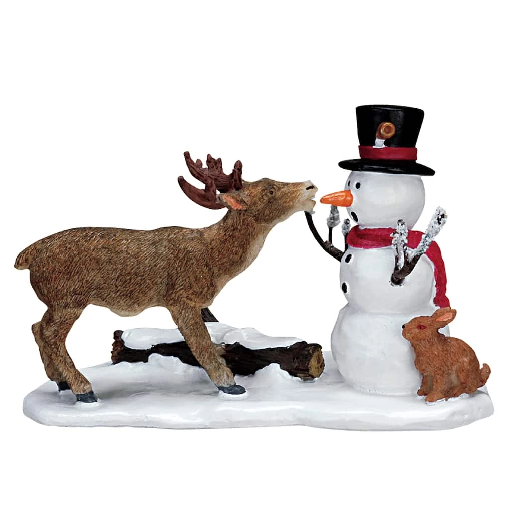 Save the snowman! This figurine from Lemax shows a hungry reindeer about to bite the snowman’s nose. You can place this figurine along with other playful accents for a lovely festive setup.