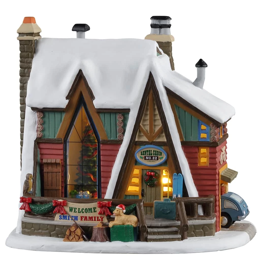 Christmas is all about family, so what better way to celebrate it than with a Mountain Holiday Reunion? This A-frame wooden cabin has a car pulling into the garage. The front porch has a big banner that says. “Welcome Smith Family.” Through the front window, you can see a huge Christmas tree adorned with presents underneath.